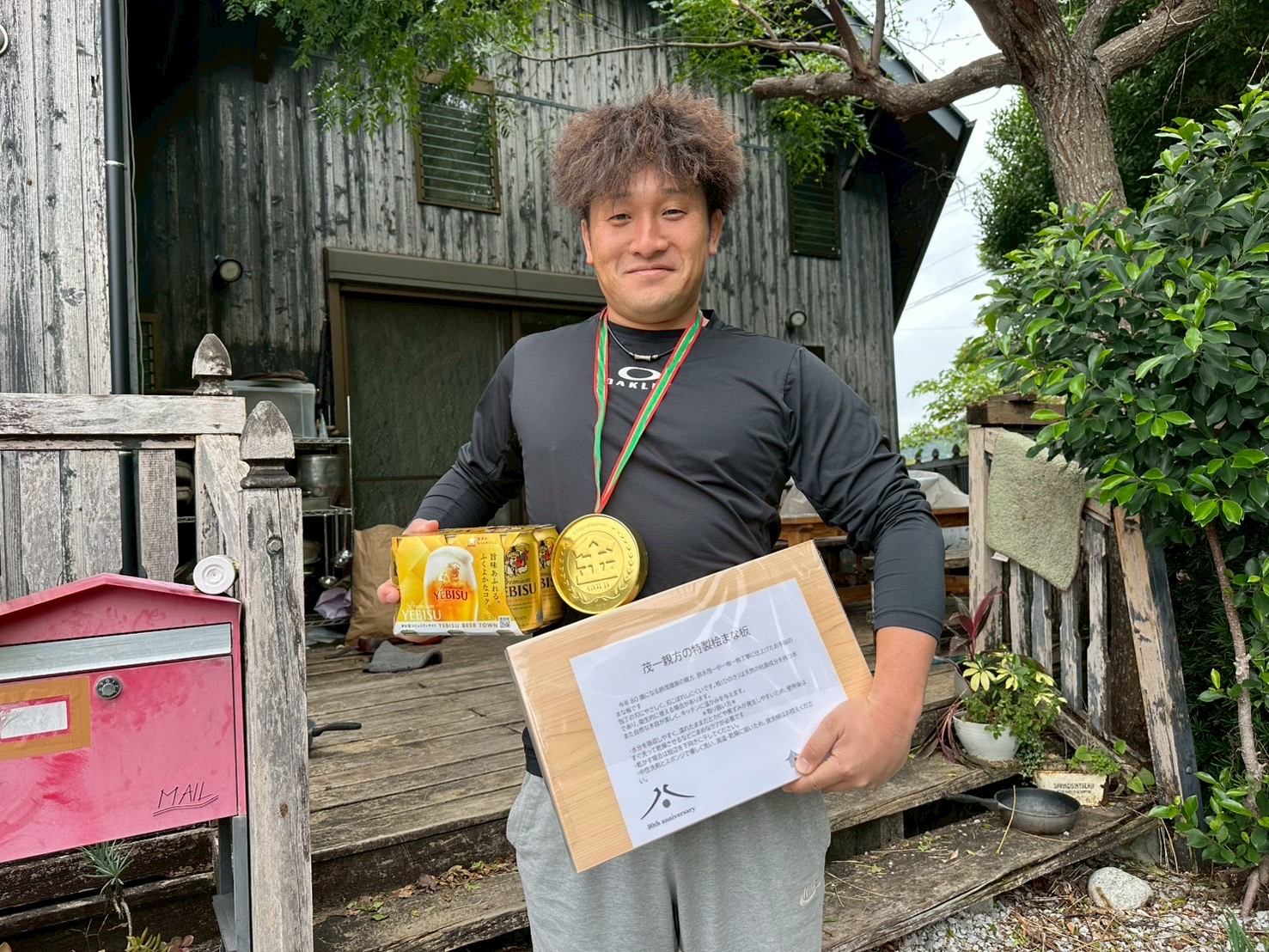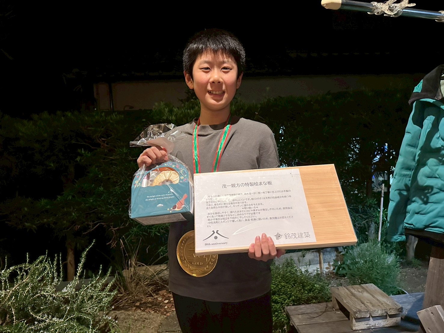 五寸釘タイムトライアルの優勝者に副賞をお届けすることができました。(子どもの部は3寸釘)