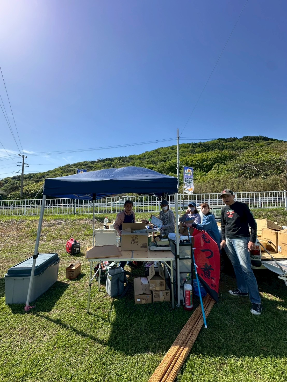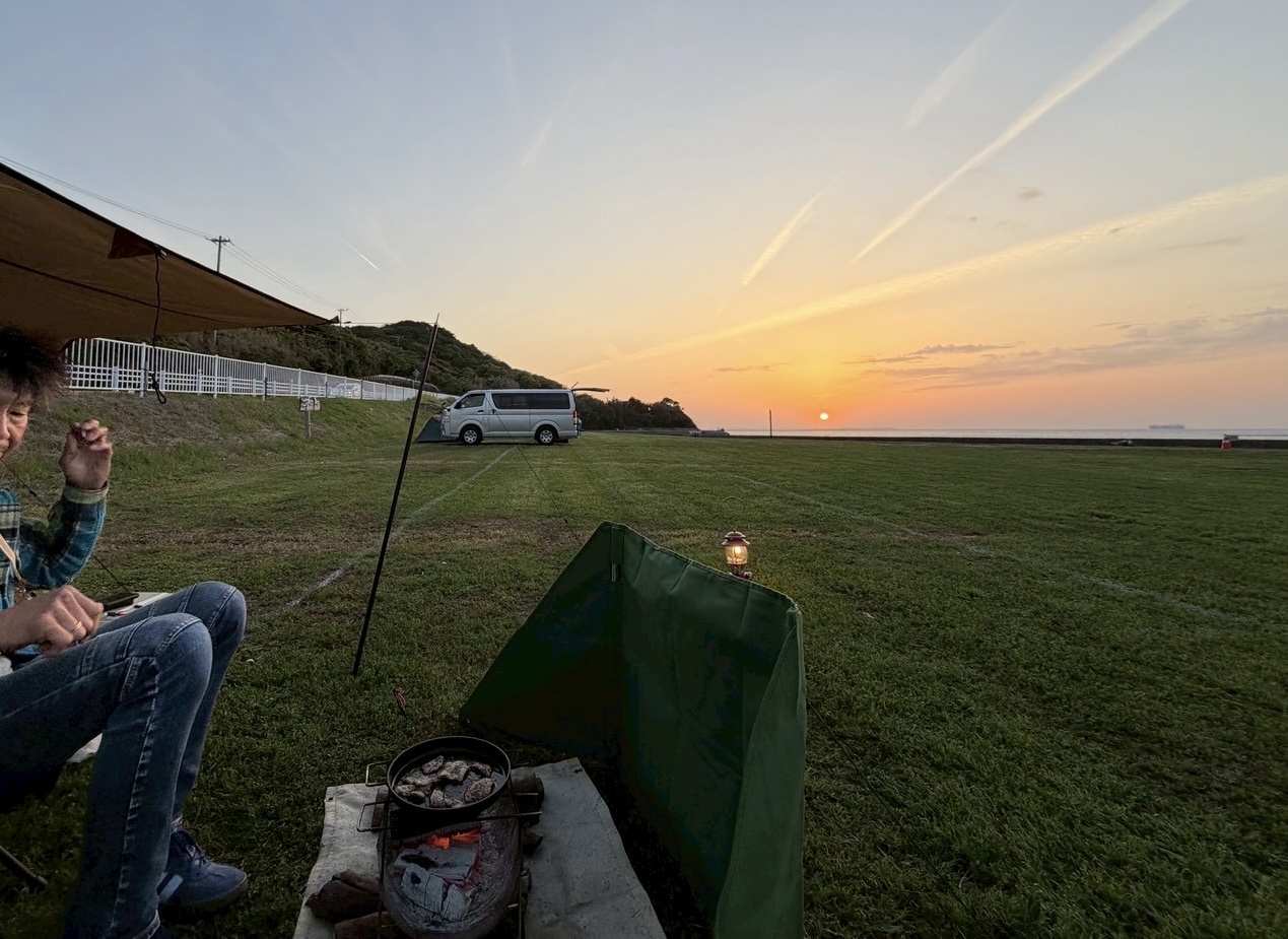 青い海と広い空に囲まれた仁崎キャンプ場。
