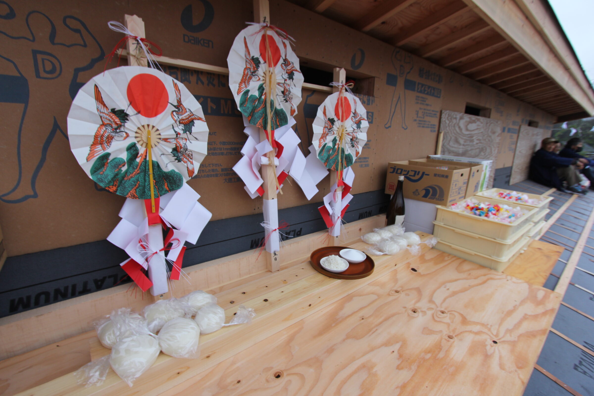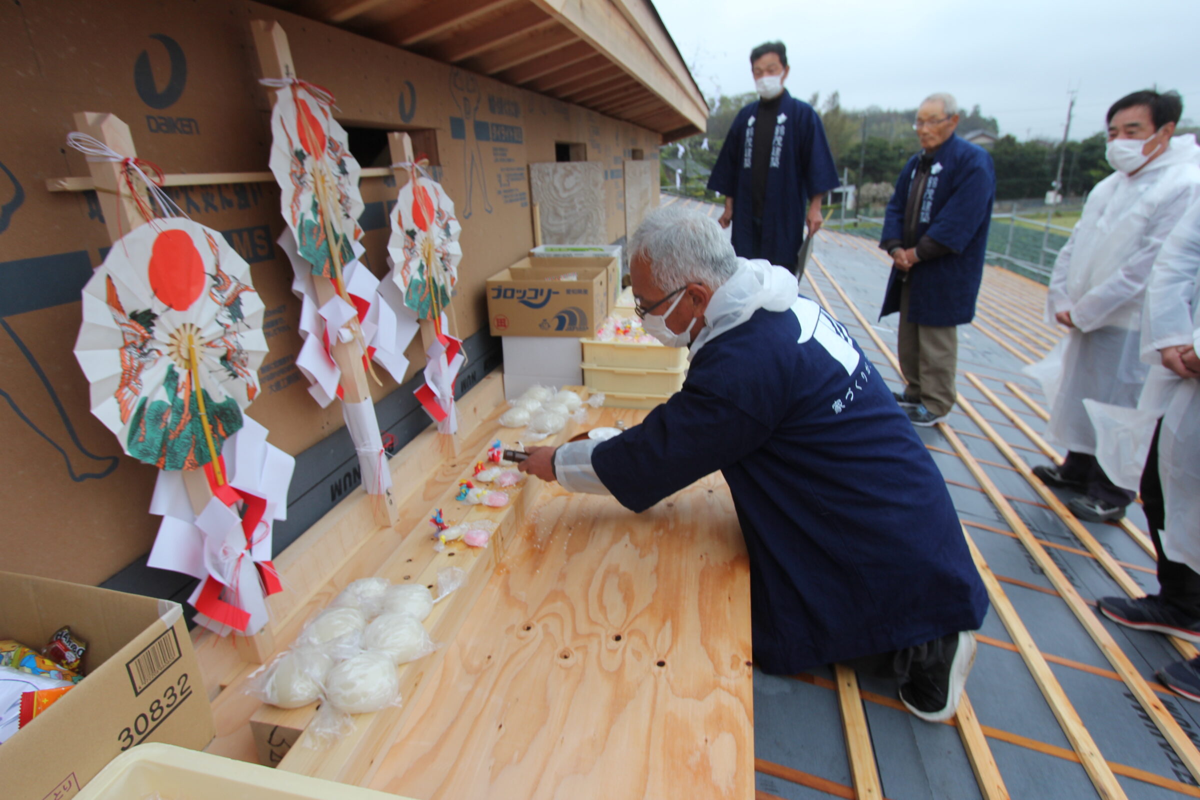 家屋の守護神と大工の神を祀って、棟上げを無事に終えられたことに感謝するとともに、最後まで工事の安全を祈願させて頂きました。
