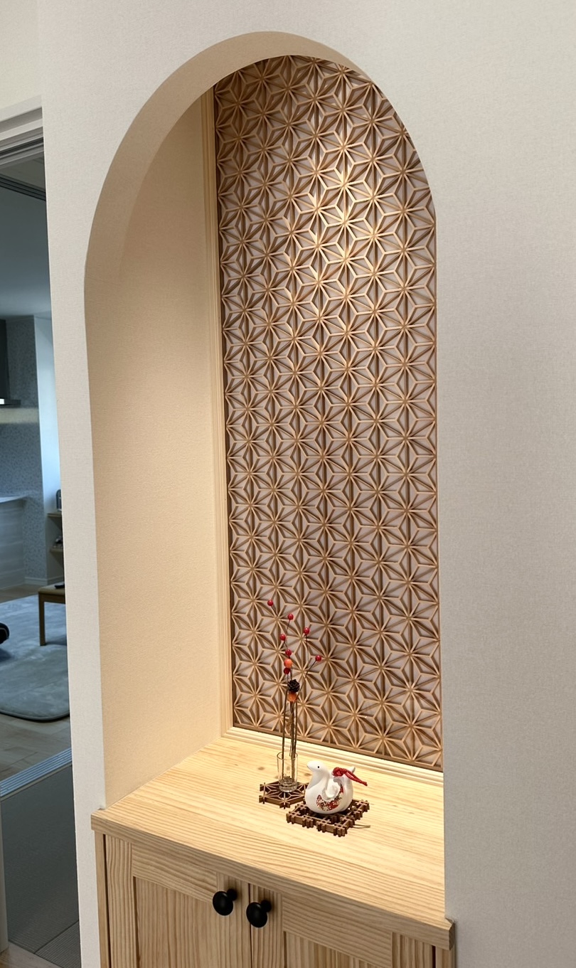 奥さまの提案で飾り棚に組子細工を取り入れることに。
