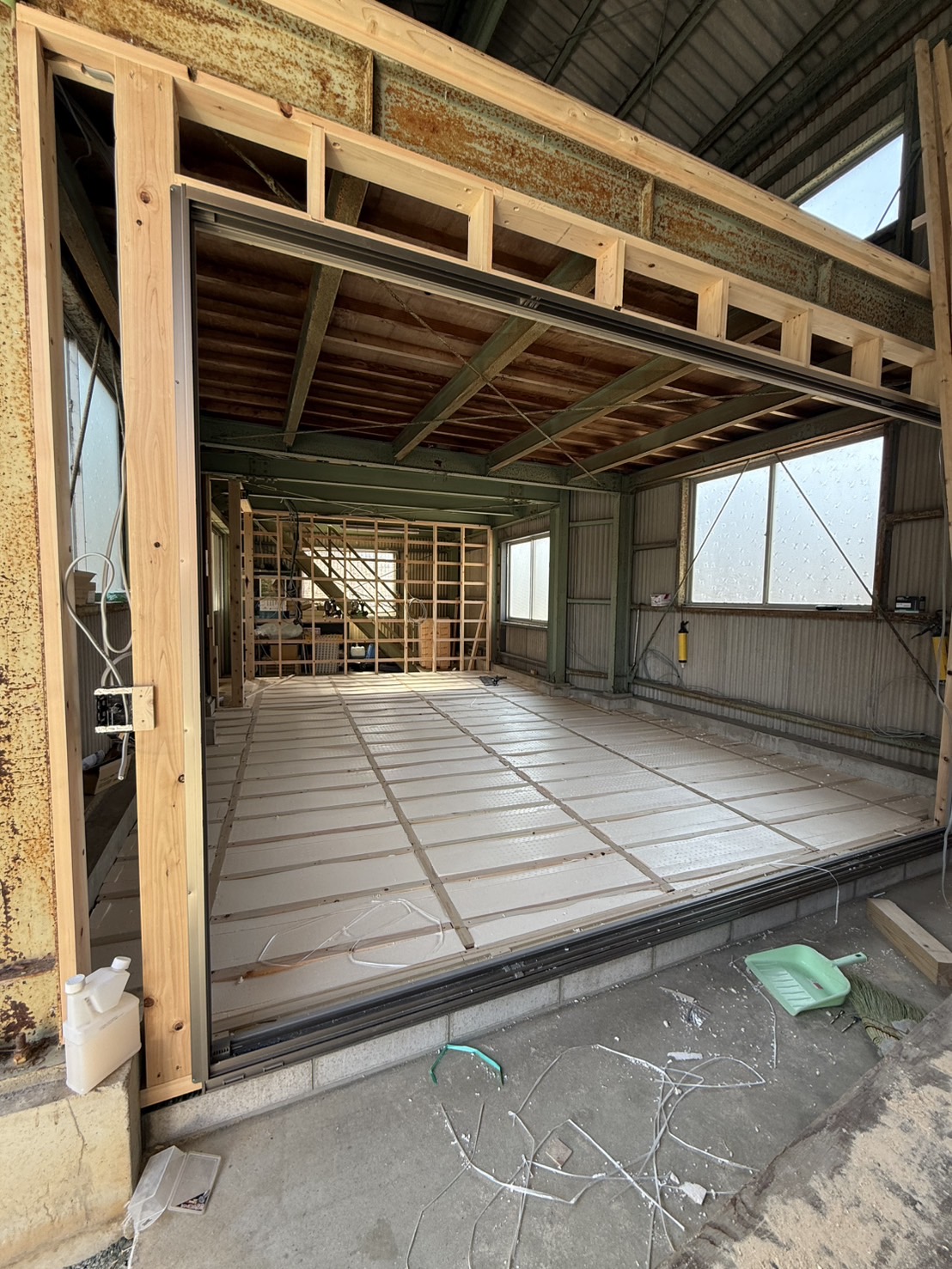 床を立ち上げ、間仕切りを起こす段階です。作業部屋っぽくなってきました。