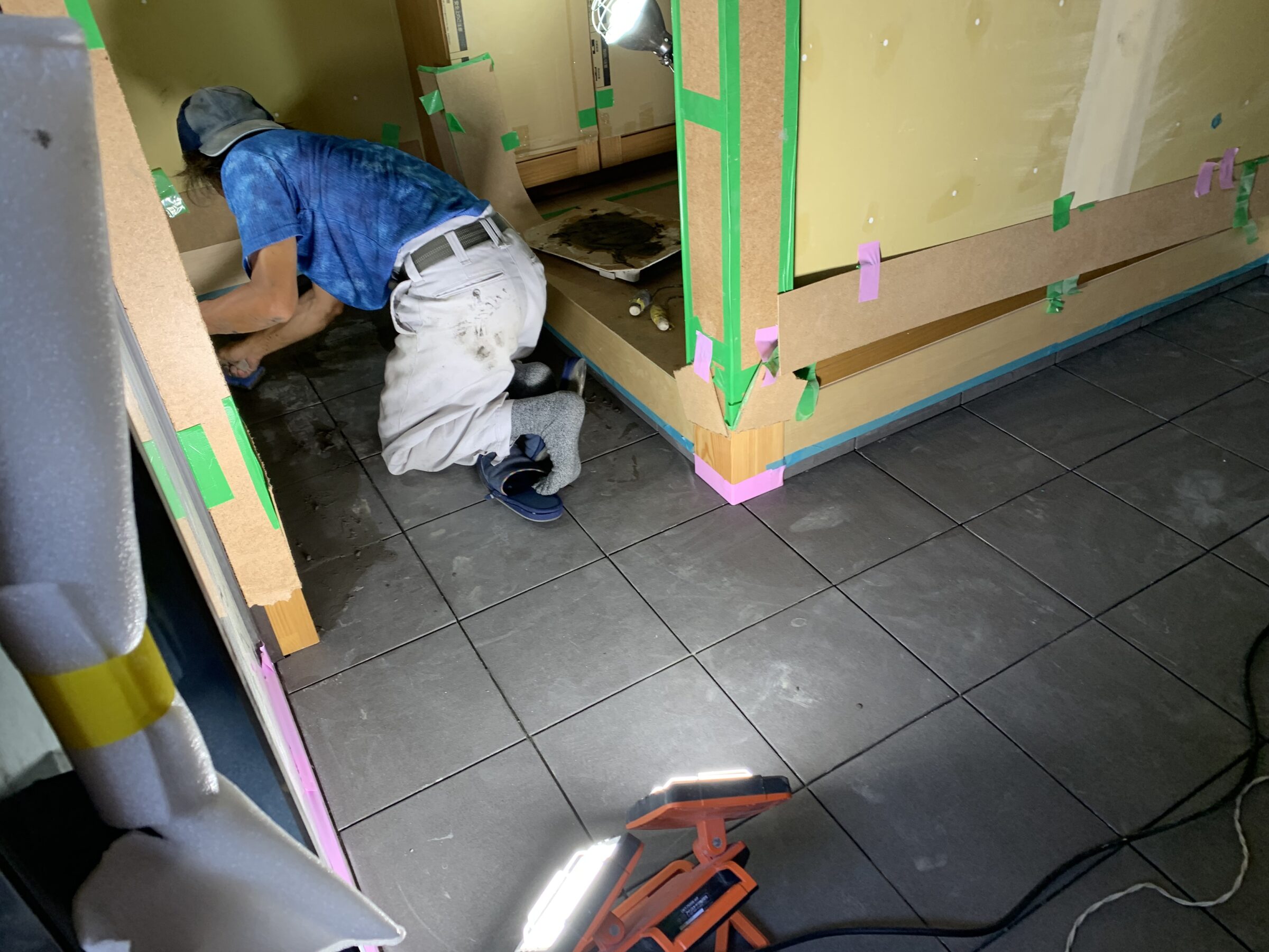 浴室をリフォームしている築43年のお客様 つづいてトイレもリフレッシュします。 床も壁も丈夫なタイルで施工してあるので解体が大変です。 下地は土の断熱材の荒壁がたくさん施工してあります。 …